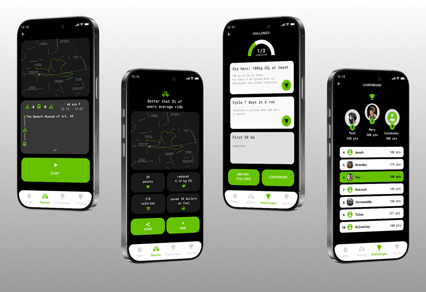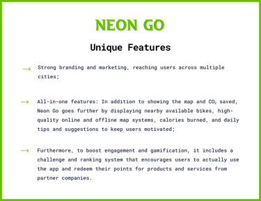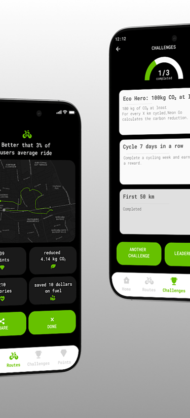 Neon Go is a self-initiated project that encourages users to adopt healthier and more sustainable habits by combining eco-friendly goals with rewards and cost savings.