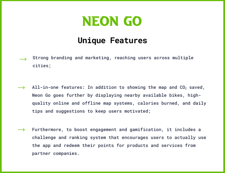 Insights revealed that many users perceive traditional sustainable mobility apps as lacking engaging and immersive experiences. These platforms often fail to consolidate essential features in a single, user-friendly interface. Users are seeking a more practical, intuitive, and mobile-optimized experience that they can access anytime, anywhere. However, many current apps fall short due to confusing navigation, ultimately leading to user frustration.